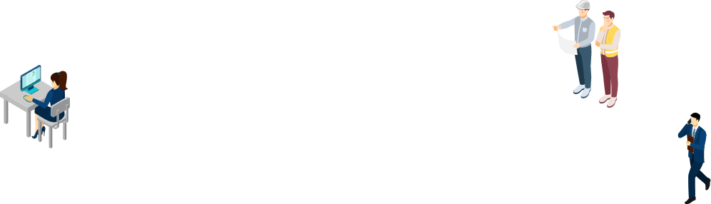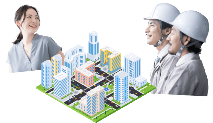 工事の進捗管理やデータ入力、見積書や報告書などを作成する「現場管理業務」と、オフィス環境整備や社員の健康管理、各種手続きなどをおこなう「総務・経理業務」が中心。自社や協力会社の社員を支えるお仕事です。